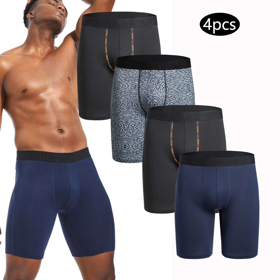 4pcs long Men’s underpants Sports Leggings Boxer shorts mens polyester underwear man Quick-drying boxer for men Bottom Shorts